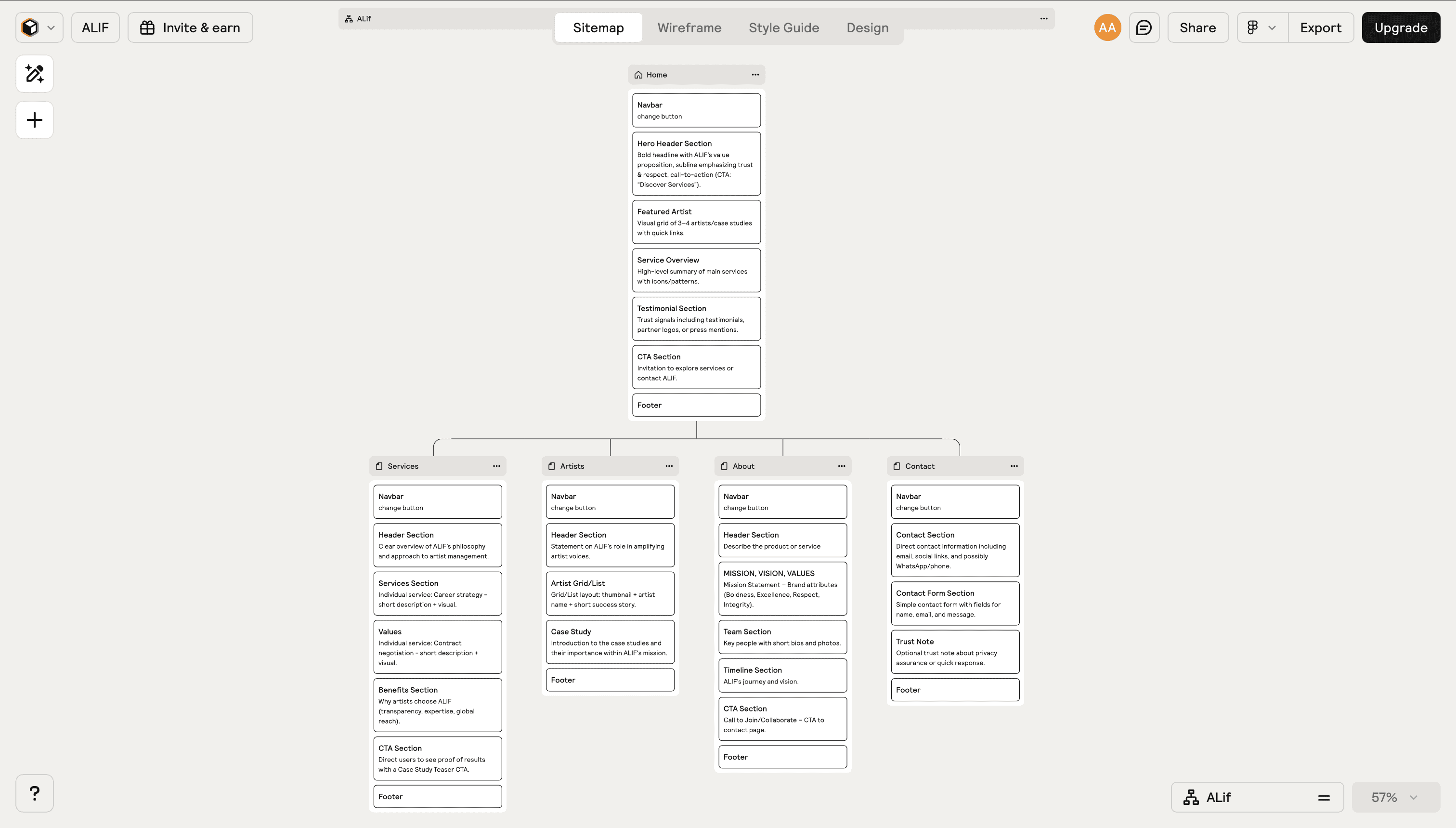 Information architecture and early homepage structure were mapped to define user pathways before moving into high-fidelity design.