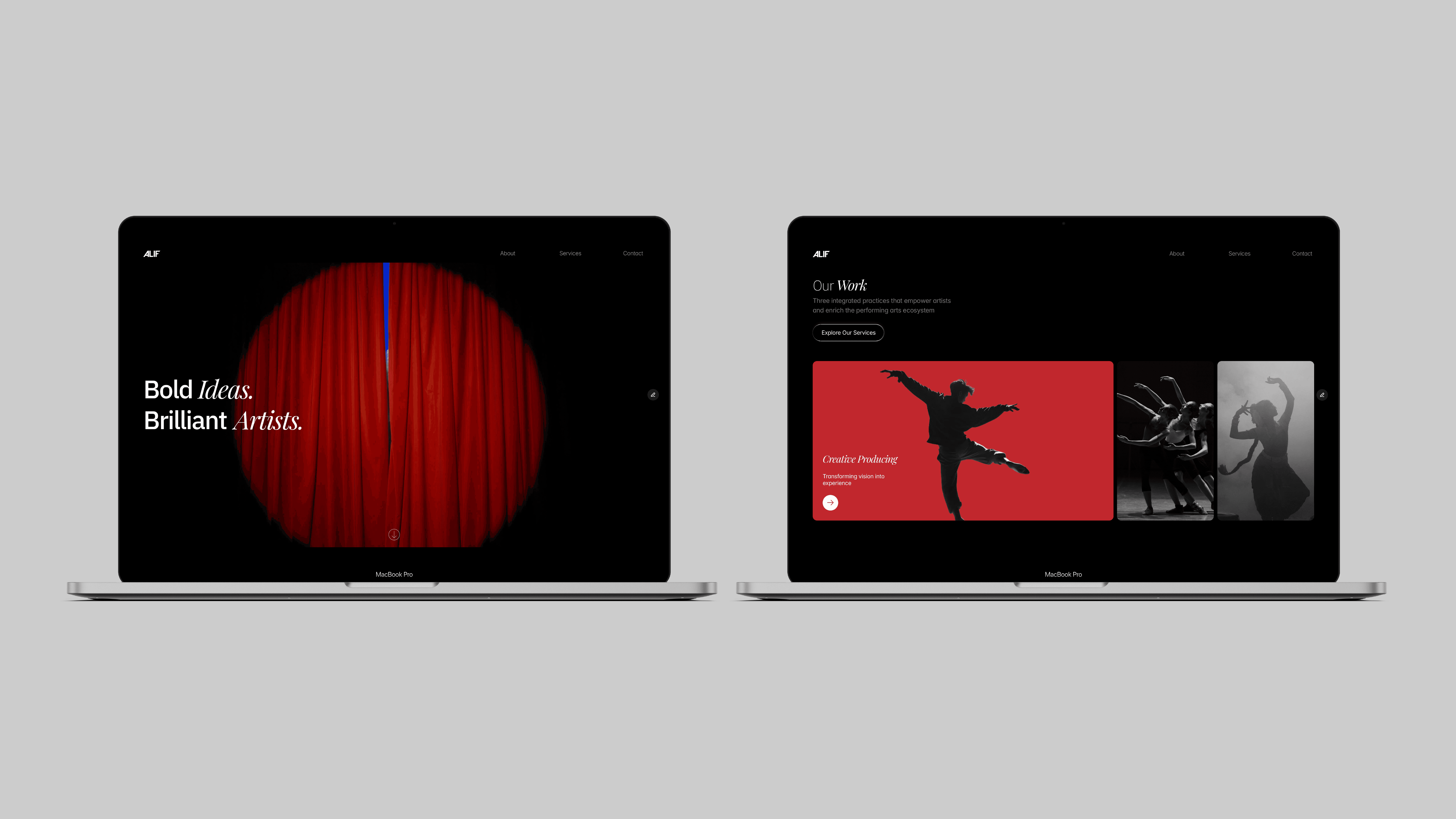 ALIF is a multidisciplinary performing-arts and artist-management company. The project involved a full brand identity redesign followed by the design and build of a new website to support artist discovery and professional credibility.